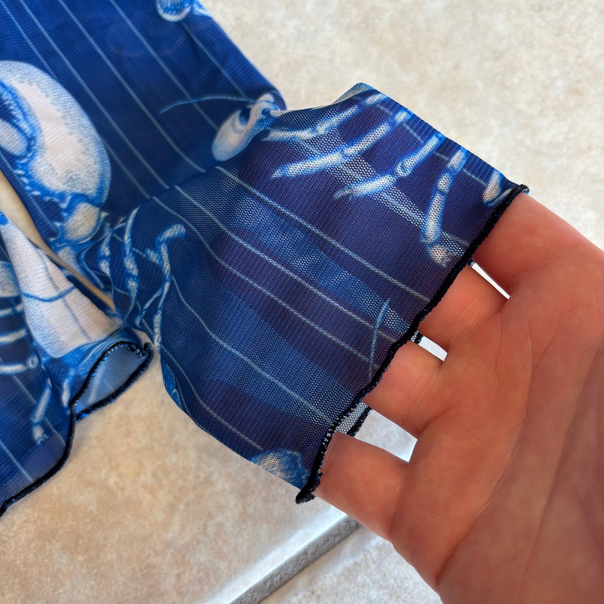 Turn heads in these bold mesh tops. Each design is crafted from a lightweight, semi-sheer mesh that hugs your shape with a thin, body con fit. The breathable fabric makes them perfect for layering or wearing solo when you want all eyes on you. With striking all over prints from vivid sea life to floral and shell motifs, these tops are not just clothes, they are statements. Slip one on and be ready to get noticed.